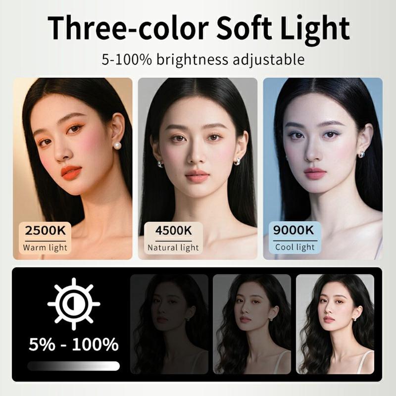 Réglez la lumière de 2500K pour les tons chauds à 9000K pour la lumière du jour froide afin de l'adapter à tous les environnements de tournage. Parfait pour la diffusion en direct, la photographie de produits, les portraits et les conférences téléphoniques.