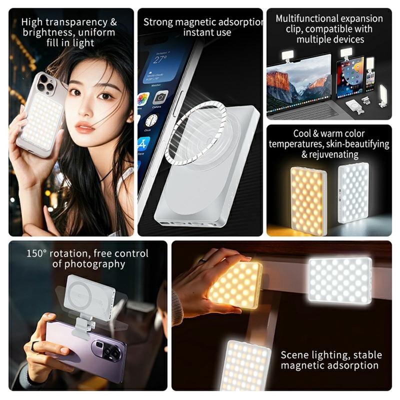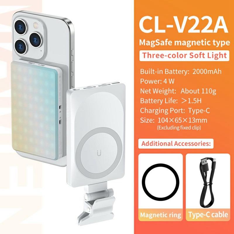 Le V22A Portable Magnetic LED Fill Light offre un éclairage puissant et précis dans un design compact idéal pour les smartphones, les caméras et les configurations de streaming. Avec le chargement Type-C, une luminosité réglable et une large gamme de températures de couleur, elle garantit d'excellents résultats, que vous filmiez à l'intérieur, à l'extérieur ou en déplacement.