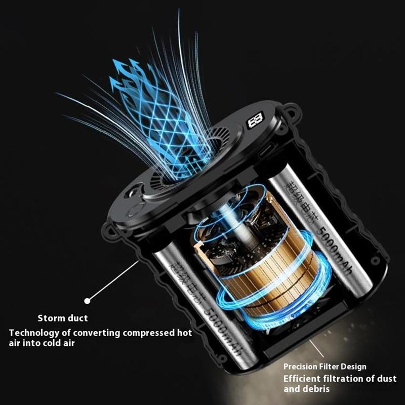 Restez au frais pendant vos déplacements grâce au ventilateur portable G30, conçu pour vous offrir un flux d'air mains libres pendant le travail, les activités de plein air et les voyages. Portez-le à votre ceinture pour un rafraîchissement constant, ou placez-le sur le support inclus pour une utilisation sur bureau à la maison, au travail ou dans une tente. Un moteur à turbine sans balais à grande vitesse de 15 000 tr/min fournit un flux d'air puissant, et 5 niveaux de vitesse vous permettent d'ajuster la brise en fonction des changements de température et de l'intensité de l'activité.