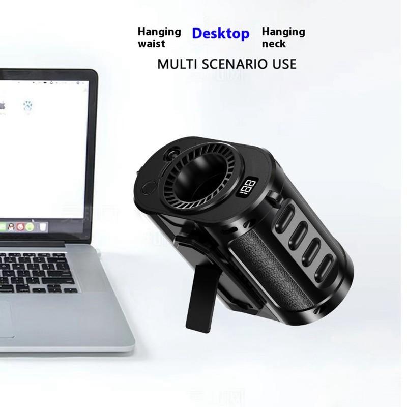 - Ventilateur à fixer à la taille pour un rafraîchissement mains libres, peut également être utilisé sur un bureau grâce à son support