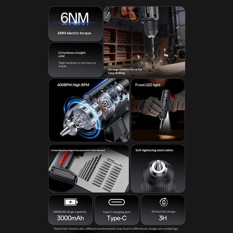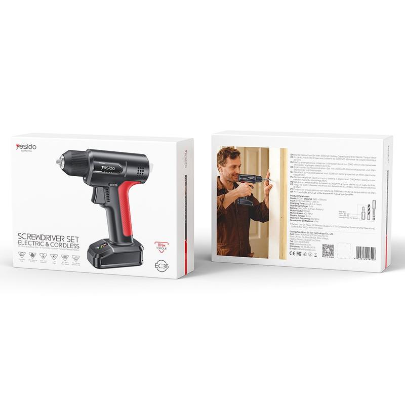 Visseuse-perceuse sans fil Yesido EC36, 3000mAh, avec un couple de 8 Nm, une vitesse de 400 tr/min et une lampe LED