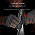 Une lampe LED intégrée améliore la visibilité lors des travaux dans les coins sombres, derrière les meubles, à l'intérieur des armoires ou dans d'autres espaces mal éclairés. La poignée ergonomique en caoutchouc souple offre une prise en main plus sûre et plus confortable, ce qui est particulièrement utile lors de tâches de longue durée. Ses dimensions compactes facilitent également le transport, le rangement et la manipulation de l'outil dans les espaces de travail restreints.