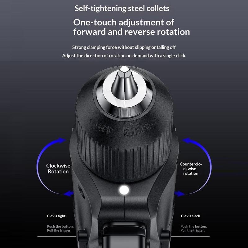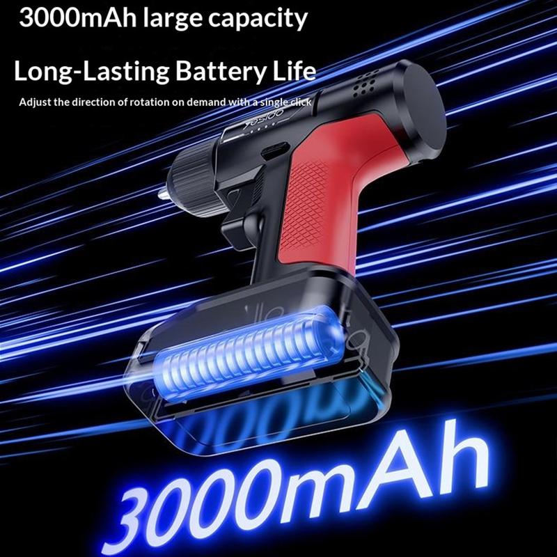 Ce kit de perceuse sans fil est conçu pour offrir une puissance fiable dans un format compact. Avec un couple électrique pouvant atteindre 8 Nm et une vitesse de moteur de 400 tr/min, il convient à un large éventail d'applications de vissage et de perçage léger. La conception sans fil vous offre une plus grande liberté de mouvement, tandis que la batterie au lithium de 3 000 mAh permet de travailler plus longtemps sans avoir à recharger constamment l'appareil.