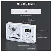 L'interface OLED intuitive affiche les réglages en temps réel de la luminosité et de la température de couleur. Les deux boutons de réglage garantissent un fonctionnement rapide, précis et convivial, idéal pour les débutants comme pour les professionnels.