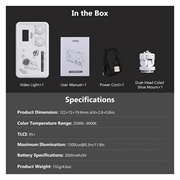 Grâce au réglage progressif entre la température chaude de 2500K et la température froide de 9000K, vous pouvez créer des ambiances lumineuses précises pour les interviews, les portraits, les prises de vue de produits ou les visuels cinématographiques. La large plage de températures permet une adaptation transparente à tous les environnements.