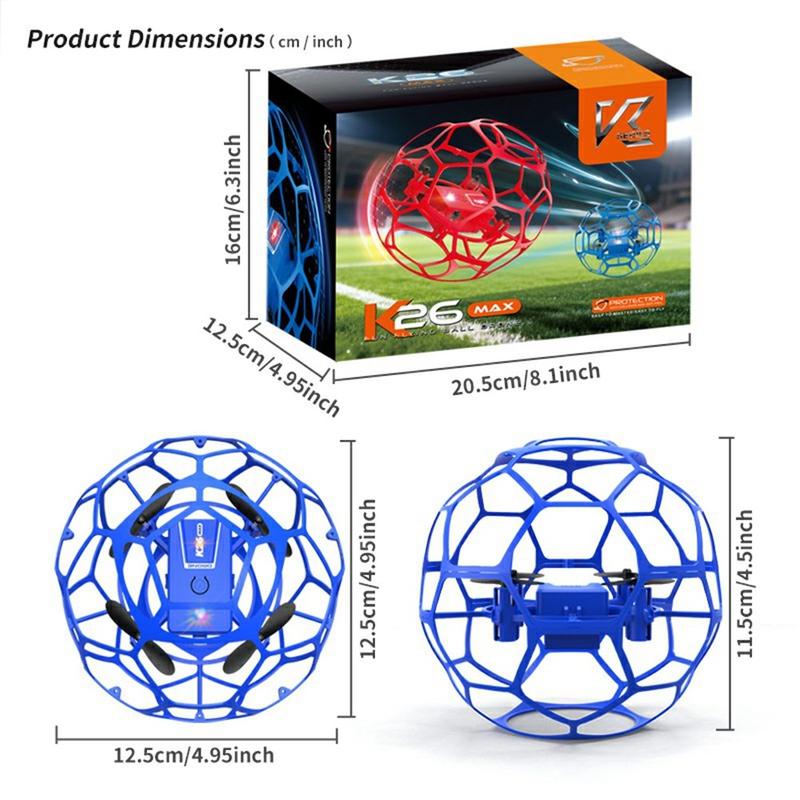 Le drone XKJ K26 de type ballon de football est un quadcoptère volant léger conçu pour des jeux sûrs et passionnants. Sa structure sphérique en filet de protection entoure les hélices, réduisant ainsi le risque de collision et permettant aux enfants et aux nouveaux utilisateurs de drone de jouer à l'intérieur comme à l'extérieur.