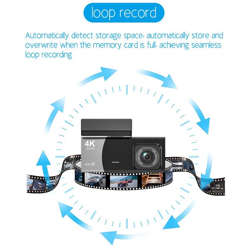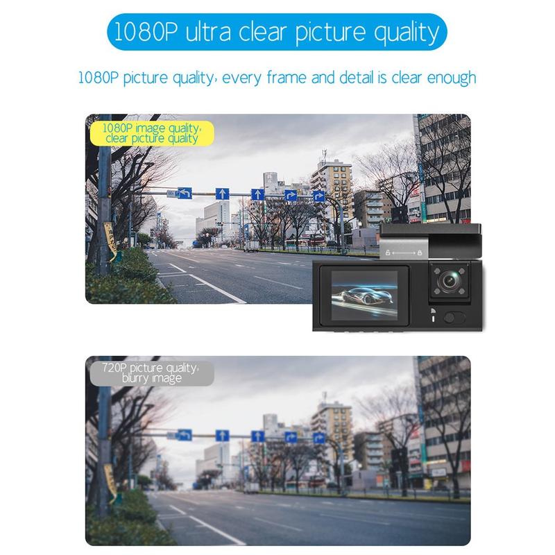 - Système à triple objectif avec enregistrement 4K à l'avant, 720P à l'intérieur et 720P à l'arrière.