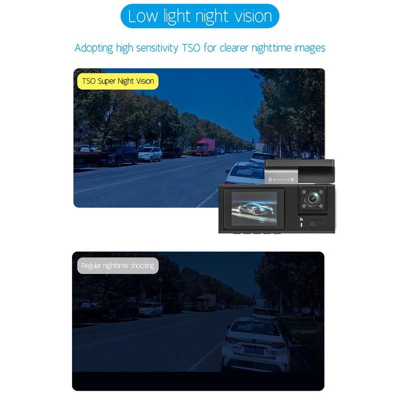 La caméra de tableau de bord à trois lentilles Y08 permet de surveiller l'ensemble du véhicule grâce à trois caméras haute définition qui capturent simultanément la route, l'intérieur de l'habitacle et la vue arrière. La caméra avant enregistre en 4K, tandis que les objectifs intérieur et arrière 720P assurent une large couverture pour la conduite quotidienne, le covoiturage, les véhicules familiaux et la sécurité des voitures garées.