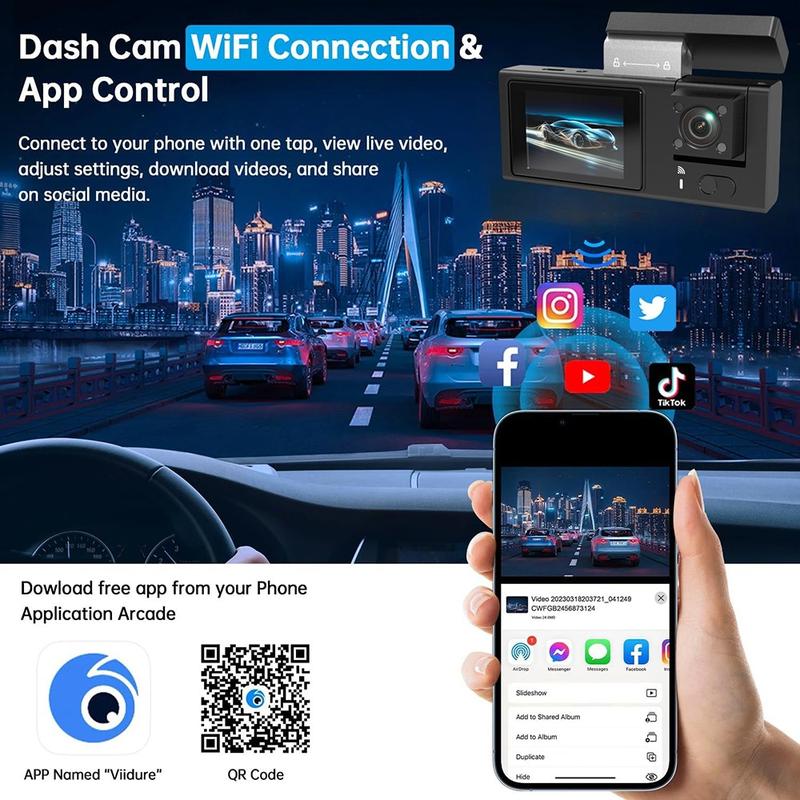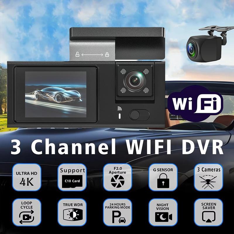• Y08 4K Triple-Lens Dash Cam - DVR avant, intérieur et arrière avec WiFi, écran 2" IPS & G-Sensor