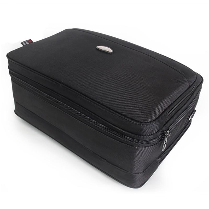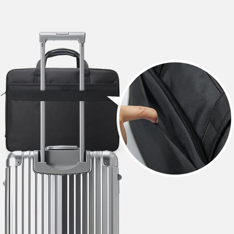 Une fermeture à glissière souple permet d'augmenter la capacité du sac en cas de besoin, ce qui est idéal pour les voyages d'affaires ou les jours où des documents et des accessoires supplémentaires sont nécessaires. La conception de la sangle de bagage arrière permet une fixation sûre aux poignées de la valise, réduisant ainsi les tensions pendant le voyage. La poignée supérieure robuste et la bandoulière détachable et réglable (90-150 cm) offrent des options de transport flexibles pour toutes les occasions.