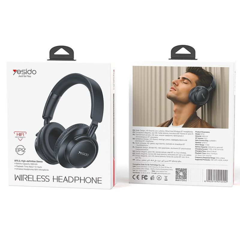 Yesido EP12 Casque supra-auriculaire Bluetooth - Noir