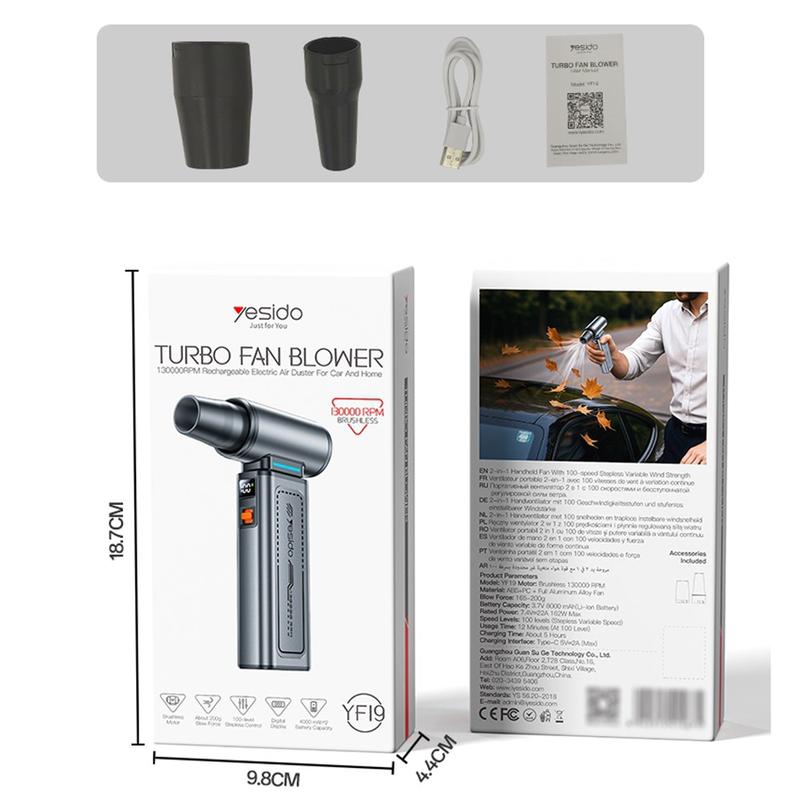 Ventilateur/souffleur de poussière portatif Yesido YF19 - Souffleur d'air/ventilateur/aspirateur sans fil haute vitesse 130000 tr/min
