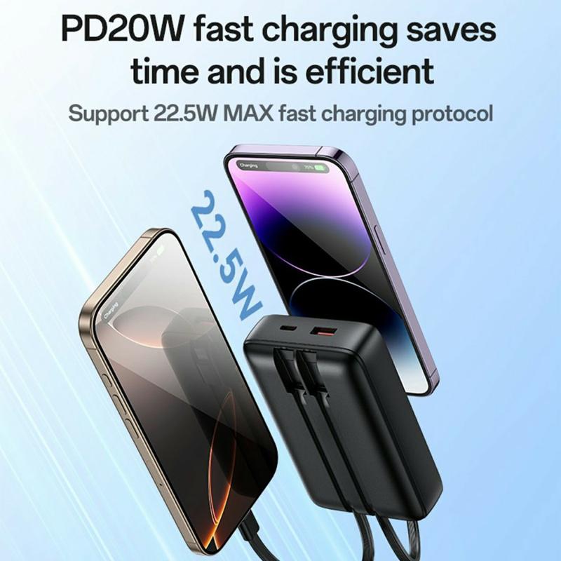 • Yesido YP85 20000mAh Power Bank - Chargement rapide 22.5W avec câbles Type-C et Lightning intégrés et affichage numérique