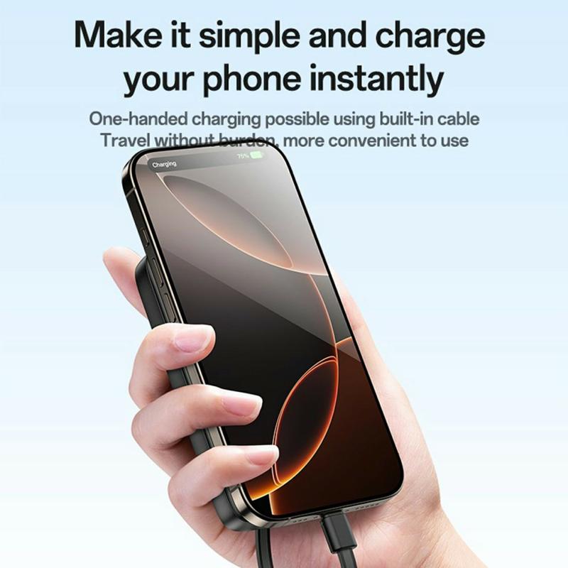 - Câbles intégrés : Les câbles Type-C et Lightning (compatibles Lightning) intégrés vous permettent d'être toujours prêt à charger sans accessoires supplémentaires.