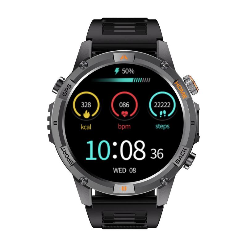Conçue pour les aventures en plein air, la montre est dotée d'une lampe de poche intégrée, d'un système de positionnement GPS et d'une boussole numérique, ce qui vous permet de naviguer sur les sentiers et de suivre vos itinéraires en toute confiance. Sa batterie haute capacité de 580 mAh offre des performances durables, jusqu'à 40 jours d'autonomie en veille et environ 7 jours d'utilisation régulière. Avec un indice d'étanchéité IP68, il résiste à la pluie, aux éclaboussures et à la baignade sans souci.