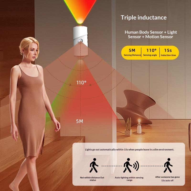 Son système de détection intelligent réagit aux mouvements dans des conditions de faible luminosité, s'allumant automatiquement et s'éteignant après un court délai pour économiser l'énergie. Avec 4 niveaux de luminosité et plusieurs modes d'éclairage, elle peut être utilisée à la fois comme veilleuse pratique et comme éclairage d'ambiance chaleureux. Son système d'installation magnétique facilite son placement, sans perçage ni configuration compliquée.