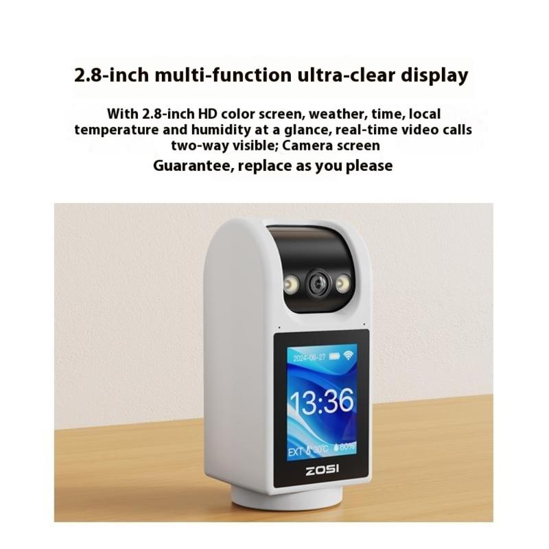 Profitez d'une tranquillité d'esprit jour et nuit grâce à la ZOSI C520M. Son écran lumineux de 2,8 pouces affiche en un coup d'œil la puissance du Wi-Fi, l'heure, la météo et le climat intérieur, tandis que l'objectif de 4MP s'oriente et s'incline pour suivre chaque mouvement dans les moindres détails de la Quad-HD.